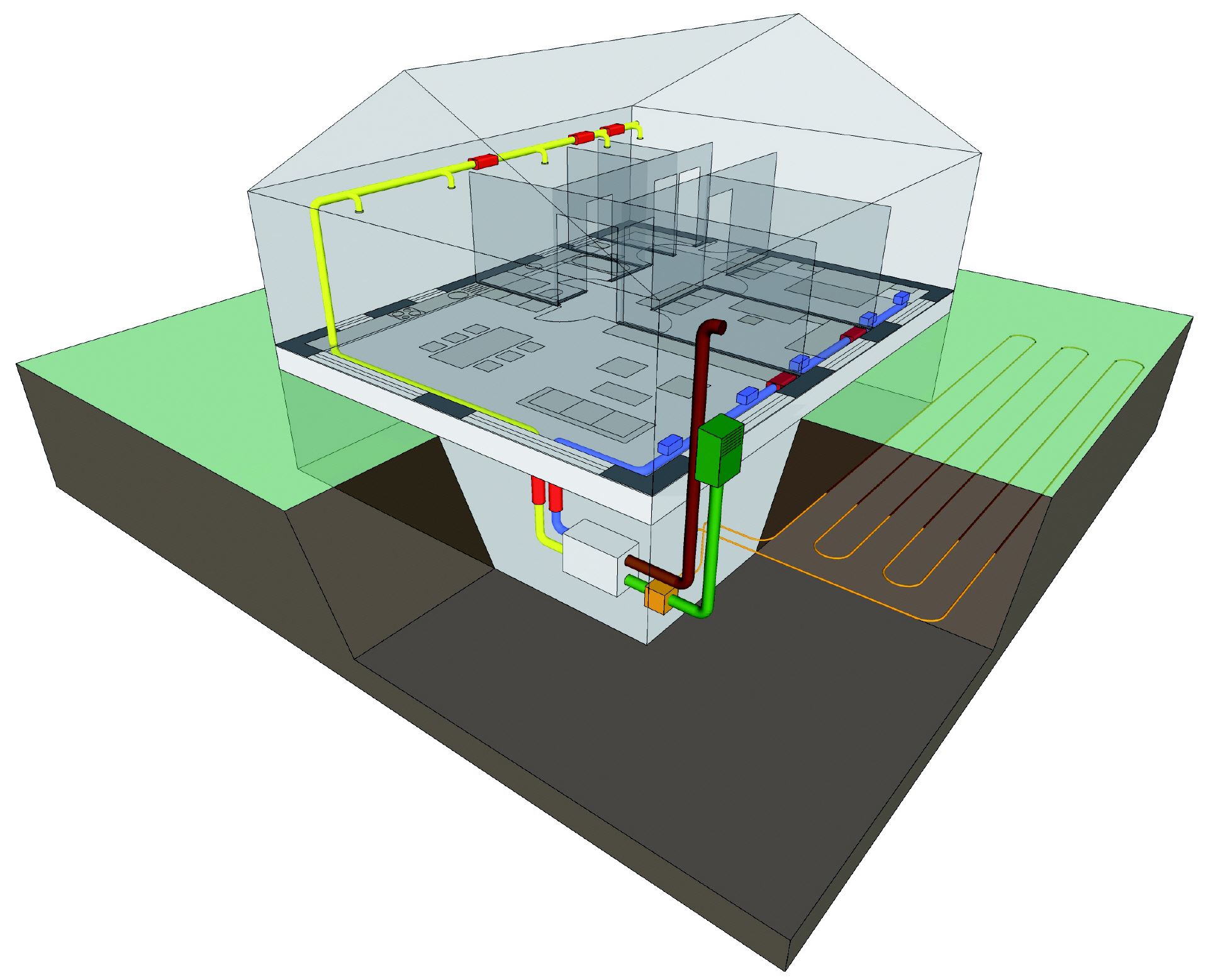Die Planung des Erdwärmetauschers sollte bereits vor Ausführung der Kellerschalung abgeschlossen sein, da die Durchführung ins Haus berücksichtigt werden sollte.