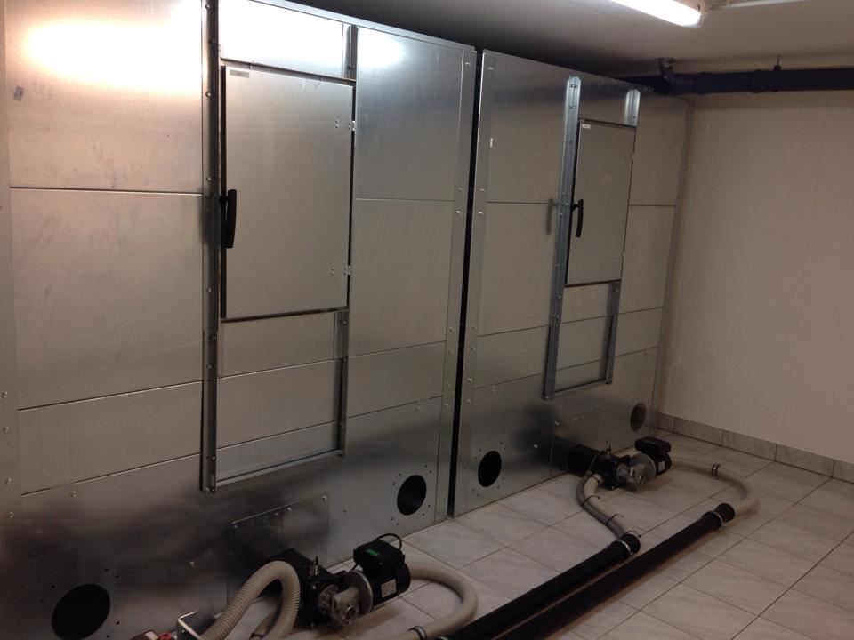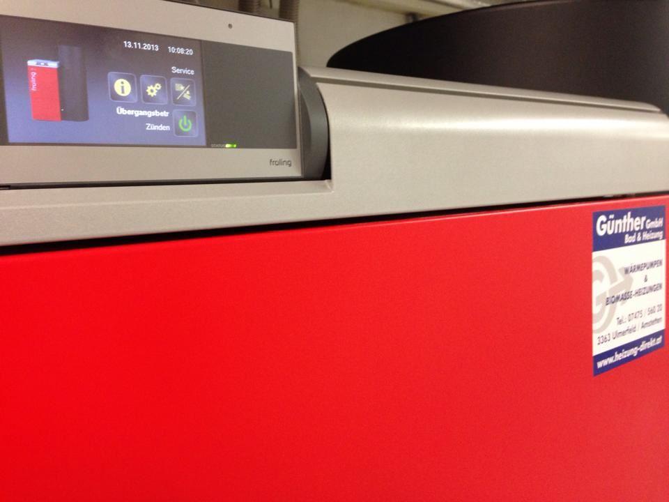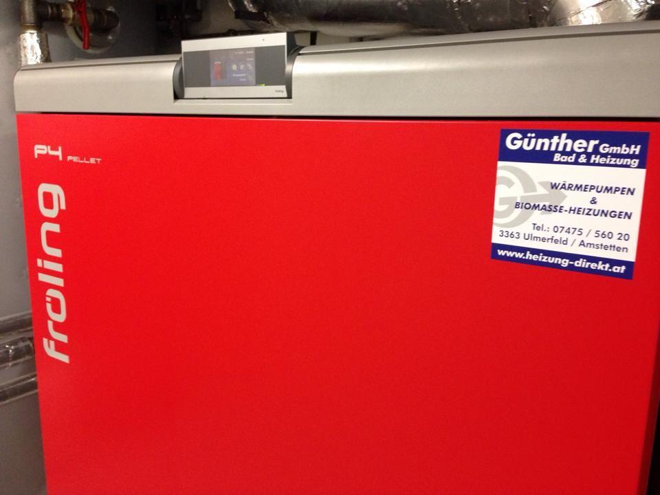 Pellet Kessel 100kW zur Beheizung mehrerer Gebäude mit Warmwasserbereitung