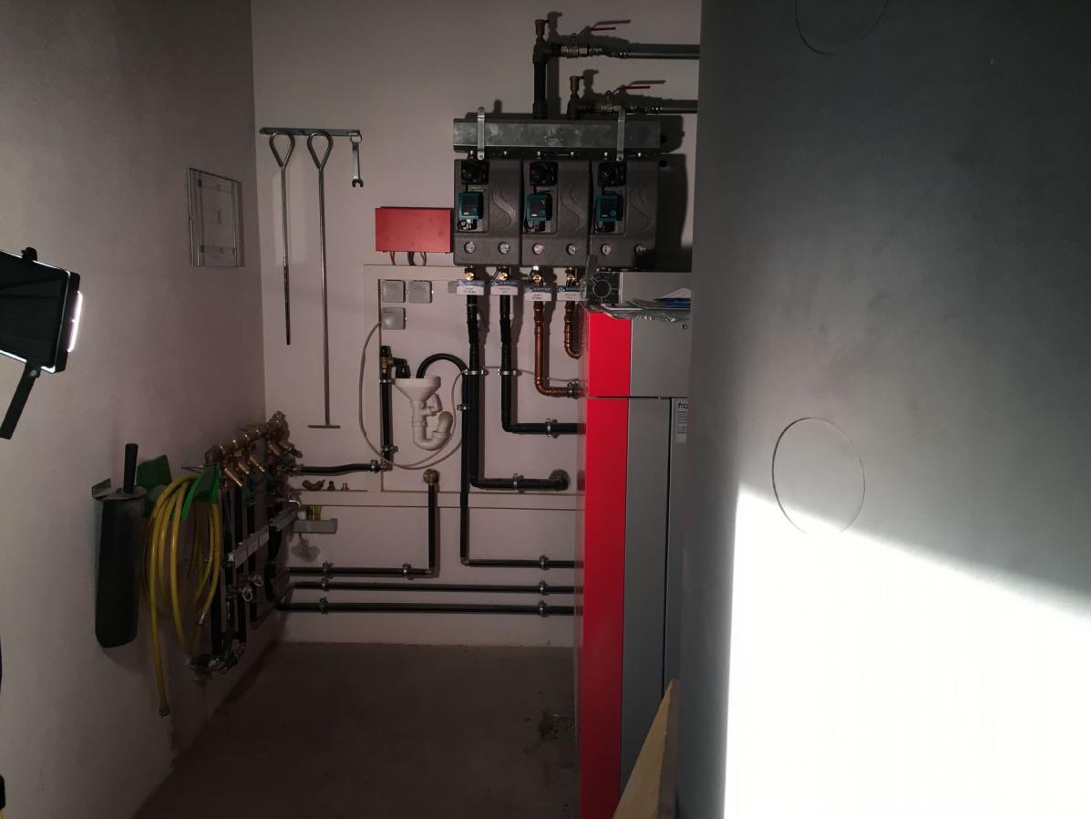 Stückholz- Pellets Kombi Kessel zur Beheizung von zwei Wohneinheiten (Alt- und Neubau).